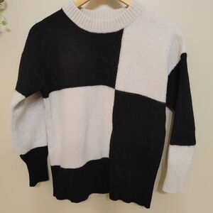 Frank And Oak Lambswool 80% Black & Cream Colorblock Sweater Size Small Crewneck