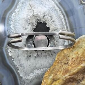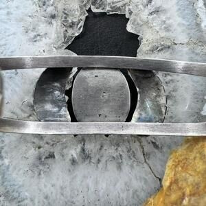 Vintage Native American Silver Oval Turquoise Decorated Split Shank Bracelet