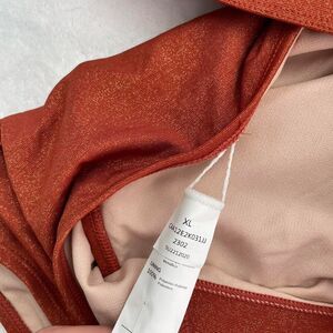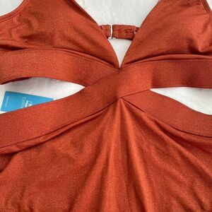 burnt orange, sparkly, cutout, one-piece, swimsuit, poolside, summer beach, midsection design, holiday swim, vibrant color