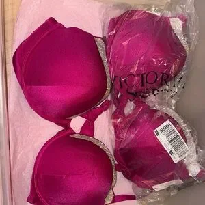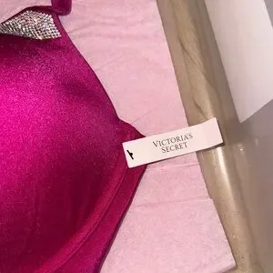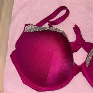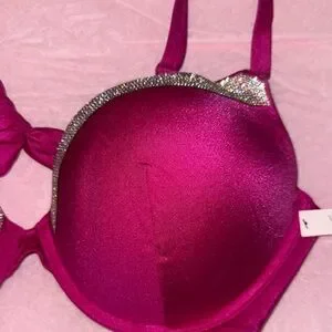 Victoria's Secret Magenta Bra with Glittering Silver Trim