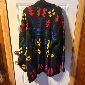 17) Vintage Kathy White Southwest Cardigan Sweater Aztec Black Multicolor