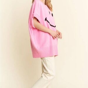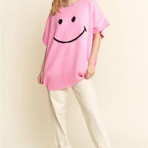 Pink Smiley Face Sweater/Short Sleeve Smile Oversized Knit Top