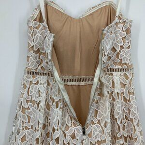 Lulus Dress Womens Small Ivory Floral Lace Embroidered Pinnacle of Prestige Strapless Sweetheart Midi. Great pre-owned condition. Back zipper. Inside lining.