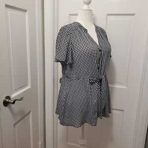 Torrid Georgette Flutter Sleeve Blouse Size 1=14/16, Houndstooth Print