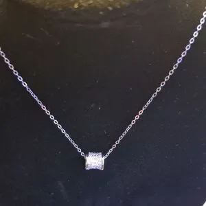 This dazzling Moissanite silver necklace features a sparkling crystal charm, perfect for enhancing any ensemble. A versatile piece for both day and night.