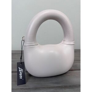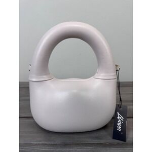 NWT Liliana Vegan Leather Cloud Oval Cream Puffy Top Handle Bag With Gold Chain