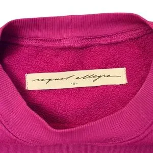 Statement Raquel Allegra sweatshirt in a vibrant hot pink hue featuring unique graphic details on the sleeves, including running horses and embroidered eye motifs. Soft fleece interior with a relaxed, oversized fit for effortless cool-girl style.