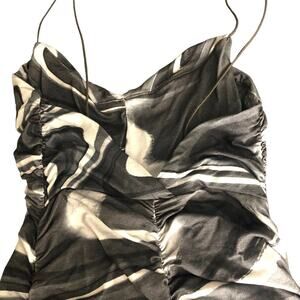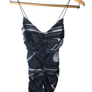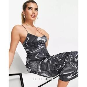 Asos Design cami strappy midi dress ruched details Black & Gray Marble Size 0