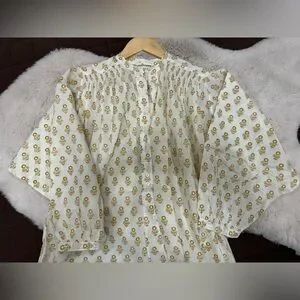 NWT DOEN Opal Dress in Cream Sunflower Block Print - XS