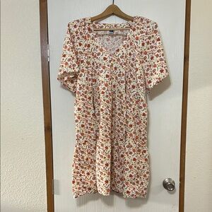 Old Navy Floral Print Dress - Cream, Orange, and Red