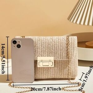 This cream woven bag features a stylish gold chain strap and 2 gold front twist closures. Super cute, can be dressed up or down. Perfect for everyday use.