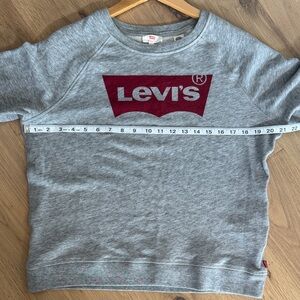 🩶 Levi’s Gray Crew Neck Sweater with Red Logo Size Large – Women’s