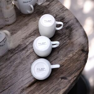 Enjoy your favorite drinks with this classic set of white mugs, each featuring a distinct number, "2," "3," and "4." Perfect for adding a touch of style to your dining experience. Microwave and dishwasher safe. Excellent condition. 12 oz .