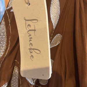 Anthropologie Embroidered Boho Maxi Dress Brown Gold Open Back Size S NWT