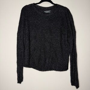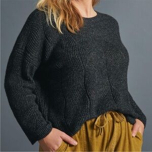 ANTHROPOLOGIE Keely Marled Black Cozy Cable Knit Crewneck Sweater
