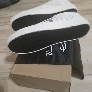 Stylish Vintage Havana athletic shoes. White body with gold accents. Comfortable and trendy design.