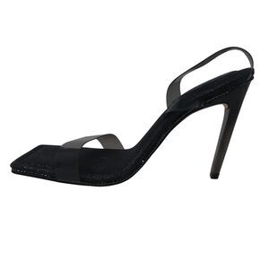 Good American Black Crystal Crush PVC Glitter Bling Open Square Toe Heels