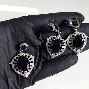 Elegant Sterling Silver 925 Sapphire Necklace and Earrings Set