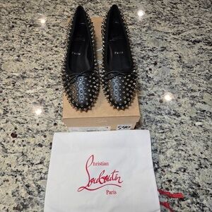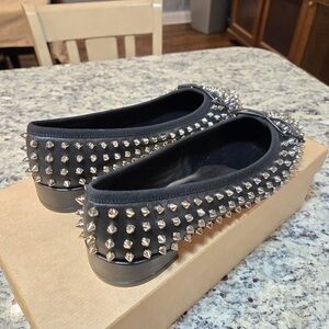 NEW Christian Louboutin Sweetie Jane Spikes Black Studded Flats Size 37