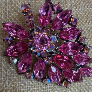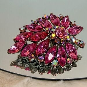 Vintage Weiss Dazzling brooche pink stones with iridescent accents. Perfect for adding sparkle.