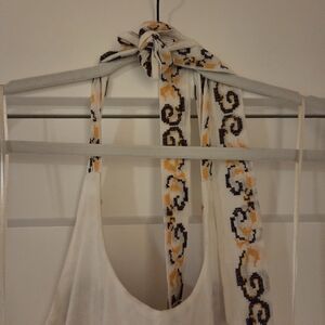 NWT Anthropologie Embroidered Halter Maxi Dress Size 12 In Ivory