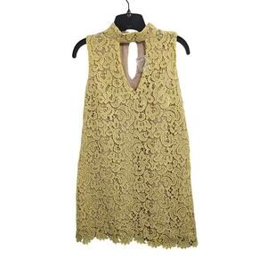 NWT! Yellow Lace High Neck Keyhole Sleeveless Mini Dress. Blu Pepper Size Small