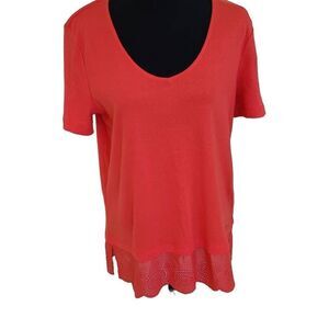 Pappagallo Womens Cotton Short Sleeve Orange Top Size Medium