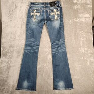 Keywords: Miss Me Jeans, Women's Denim, Bootcut Jeans, Embellished Jeans, Cross Pocket Jeans, Distressed Denim, Designer Jeans, Western Style, Cowgirl Fashion, Festival Wear, Concert Outfit, Casual Chic, Streetwear