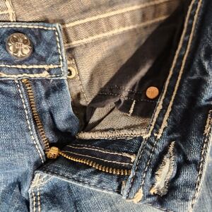 Rock these iconic Miss Me bootcut jeans and turn heads with every step. The medium wash denim is perfectly distressed, offering a lived-in feel, while the striking embellished cross design on the back pockets adds a touch of bold glamour.