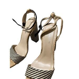 Liliana SZ 7 Cork Striped Block Monochromatic Open Toed Heels Preppy Minimalist