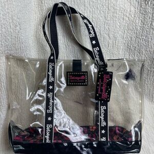Betsey Johnson Transparent clear plastic XLTote with Black trim Accents