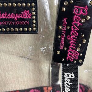 Betsey Johnson Transparent clear plastic XLTote with Black trim Accents. Magnetic top closure. Pre owned in FAIR used condition due to three black ink stains & white transfer marks no tear clean see all pictures. L5