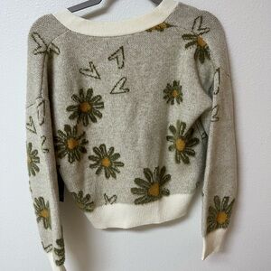 Stay cozy and stylish with this floral patterned sweater. Featuring a charming cream and green design, it's perfect for any casual outing. Women’s size XS. New with tags