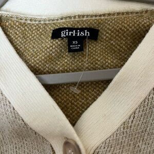 Girl.ish women’s Floral Patterned Cream and Green Sweater NWT size xs