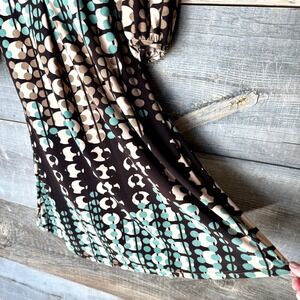 Geometric Y2K Baby Doll Dress XS/S Brown Teal Stretch Puff Sleeve Boho Fairy
