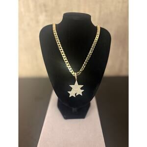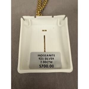This beautiful necklace features a 2ct triple star moissanite set in gold over 925 sterling silver.