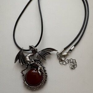 New Silver tone Dragon Pendant Necklace with Carnelian Stone