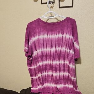 Vibrant magenta tie-dye tee. Comfortable short sleeves. Ideal for casual outings.