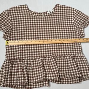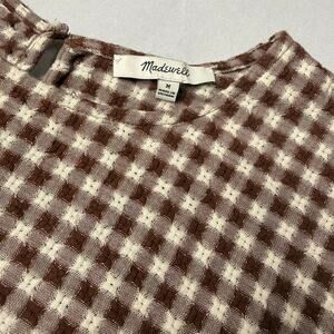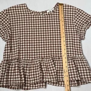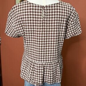 Madewell Medford Brown Gingham Checkered Peplum Short Sleeve Top Medium