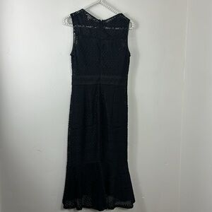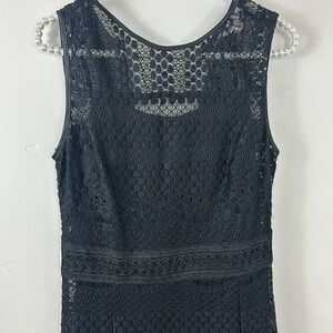 Nanette Lepore Black Crochet Lace Midi Sleeveless Party Cocktail Dress 2