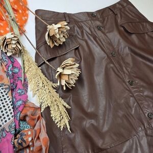 Banana Republic Brown Faux Leather Midi A-line Skirt Sz 16