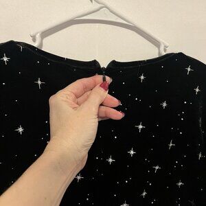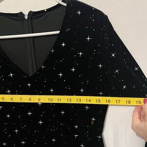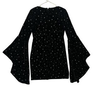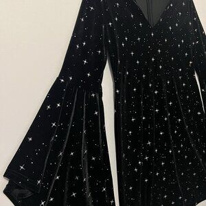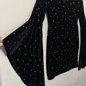 Cider Women’s Black Velvet Dress bright stars Size Large flare sleeve zipper back v neck Stretch Witchy Fairy Grunge Whimsigoth
