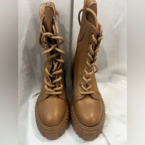 Elevate your look with these chic tan lace-up boots. Perfect for any occasion.