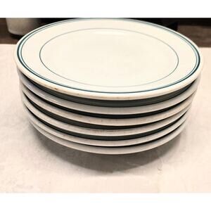 Rimroll Shenango Vintage Restaurant Ware 6.5 inch Plates Set Of 6 Green Stripe