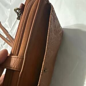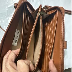 Sakroots lg smartphone crossbody bag wallet brown faux leather adjustable strap