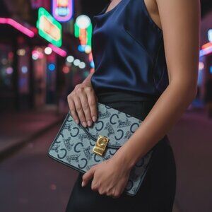 Authentic Vintage Celine Navy Monogram Canvas Flap Clutch