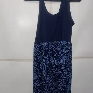 Midnight Blue Patterned Midi Dress