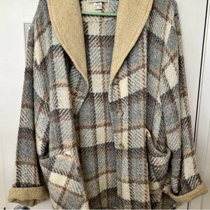 Vintage Plaid Sweater Jacket with Shawl Collar