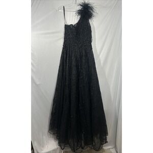 NWT MAC DUGGAL [ 6 ] 20389 Feather Embellished One Shoulder A Line Gown J2040