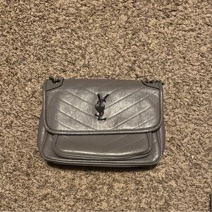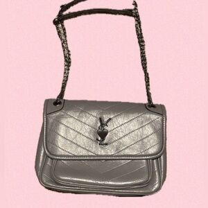 Chic grey faux leather shoulder bag in silver. Features quilted design and chain strap. Stylish and versatile. Small flaw on back right side seat picture. 🥰